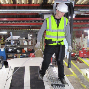 The Bi-LINE system has been installed on various refuse/garbage vehicles to provide secured access for operatives carrying out maintenance work on the vehicles roof mounted hydraulic and electrical equipment. The Bi-LINE installation generally comprises of a traveling Dual Lanyard attached to two restraint Lines, one located long each outside edge of the roof. The single Dual Lanyard is attached to the restraint lines via sliding Shuttles that allow the operative access to the full length and width of the vehicle.